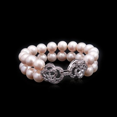 925 Sterling Silver, Cubic Zirconia (CZ), Double Flower Hinge Clasp